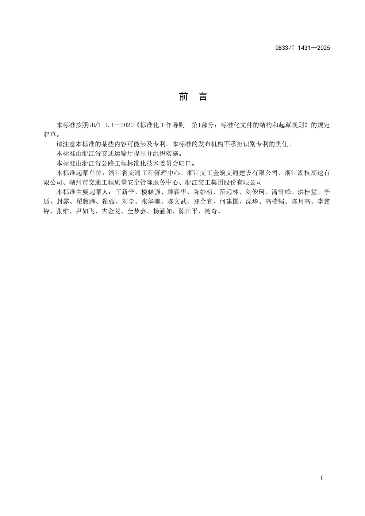 DB33/T 1431 - 2025《公路固化土路基施工规范》是浙江省针对公路固化土路基施工制定的地方标准,对施工全流程及配套管理作出系统规范,助力公路路基施工的环保化与标准化,该标准由浙江省交通工程管理中心等单位编制,浙江省市场监督管理局于 2025 年 4 月 20 日批准发布,同年 5 月 20 日正式实施。其国际标准分类归属于道路工程综合类,编制过程中引用了 GB 175《通用硅酸盐水泥》、JTG 3430《公路土工试验规程》等十余项国家及行业标准,保障了规范的兼容性与权威性,适用于公路工程固化土路基的施工、质量检测和验收全流程。