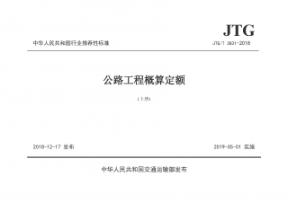 (JTG 3830-2018)《公路工程建设项目概算预算编制办法》